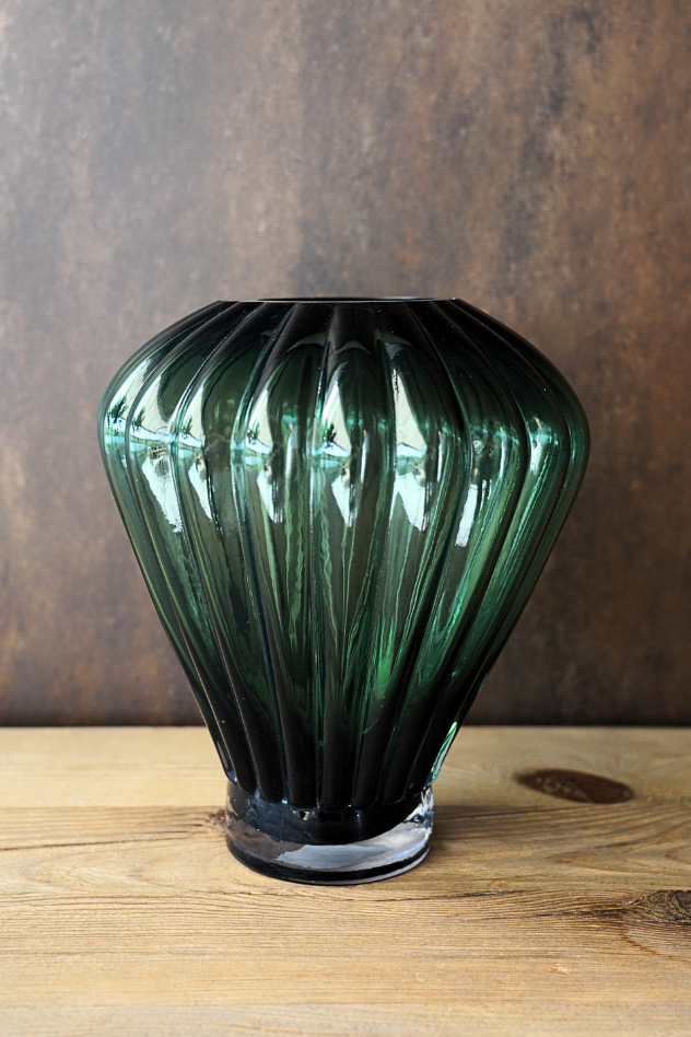 Con 35 cm de altura y un diseño geométrico con corte de diamante, este jarrón combina un diseño moderno con una transparencia sofisticada, perfecto para arreglos florales, flores secas o como objeto decorativo independiente.