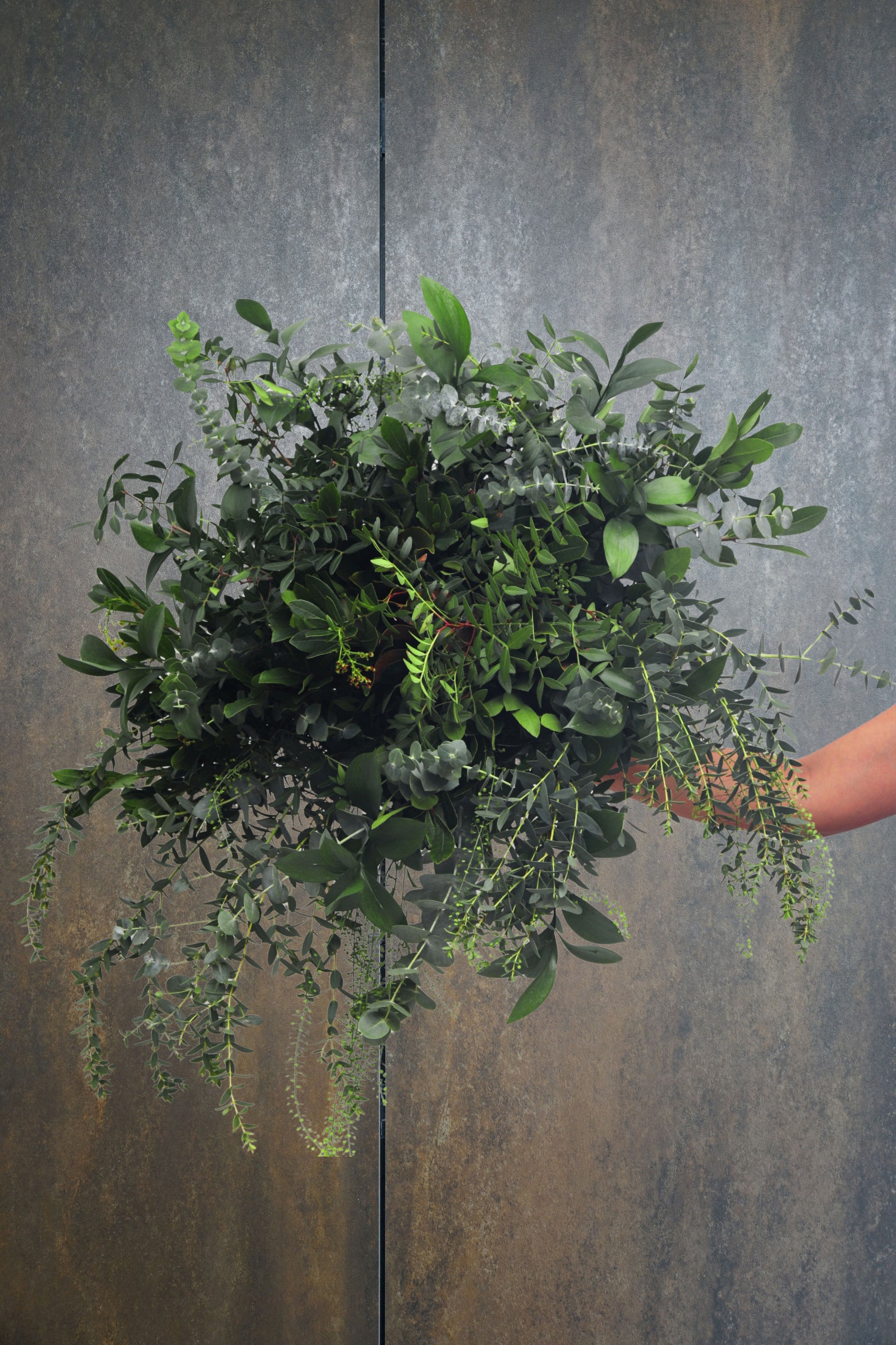 La simplicidad y frescura de nuestro ramo exclusivamente verde. Este fascinante arreglo celebra la diversidad y la vitalidad de las plantas en tonalidades verdes, creando un oasis botánico que aporta calma y serenidad a cualquier espacio.